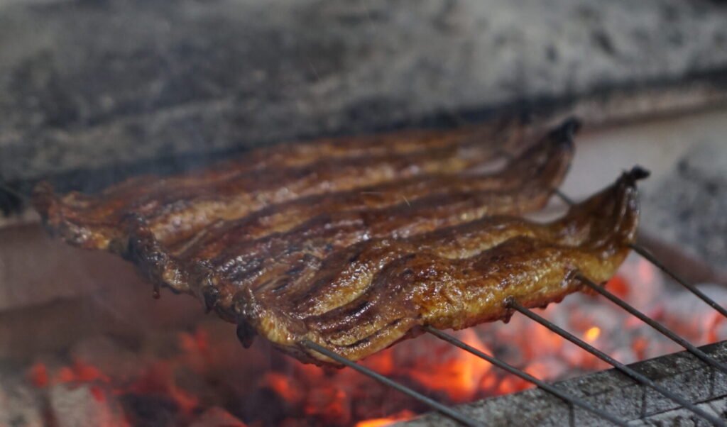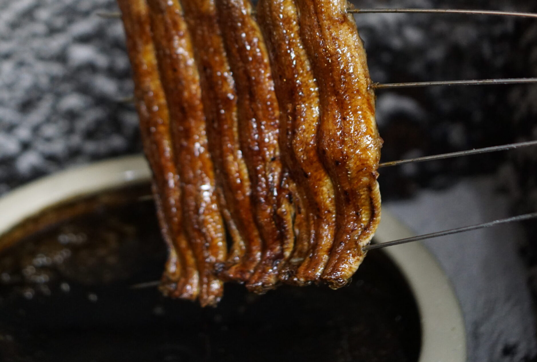 千度にも達する備長炭の強い火力で、熟練の職人が一切蒸すことなく直接焼き上げる「地焼き」にこだわっています。これにより、皮目は香ばしくパリッと、身は肉厚でふっくらとした絶妙な食感に仕上がります。秘伝の継ぎ足しタレが、香ばしさと奥深い味わいを一層引き立てます。